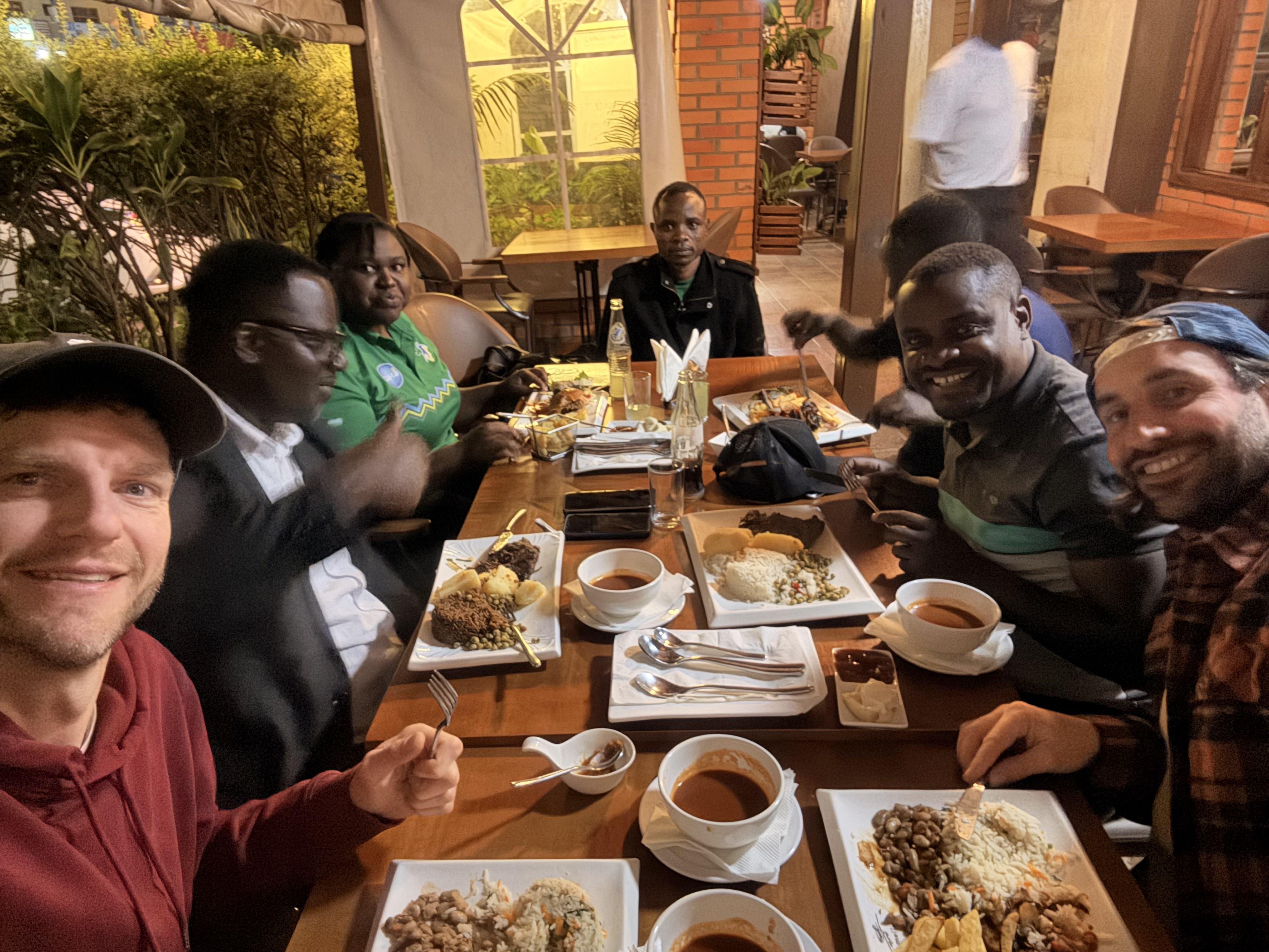 Schon am ersten Abend in Kigali wurde spürbar, was diese Reise prägen sollte: Herzlichkeit. Am Flughafen abgeholt und direkt ins Restaurant - dort trafen wir auf immer mehr bekannte Gesichter der Gorillas – Freund*innen, Wegbegleiter, Partner. Es wurde gelacht, erzählt, umarmt und die nächsten Tage geplant.